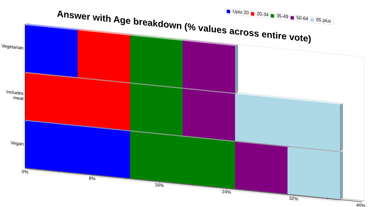 The winning answer was "Diet including meat" with 37.50% of the total vote.