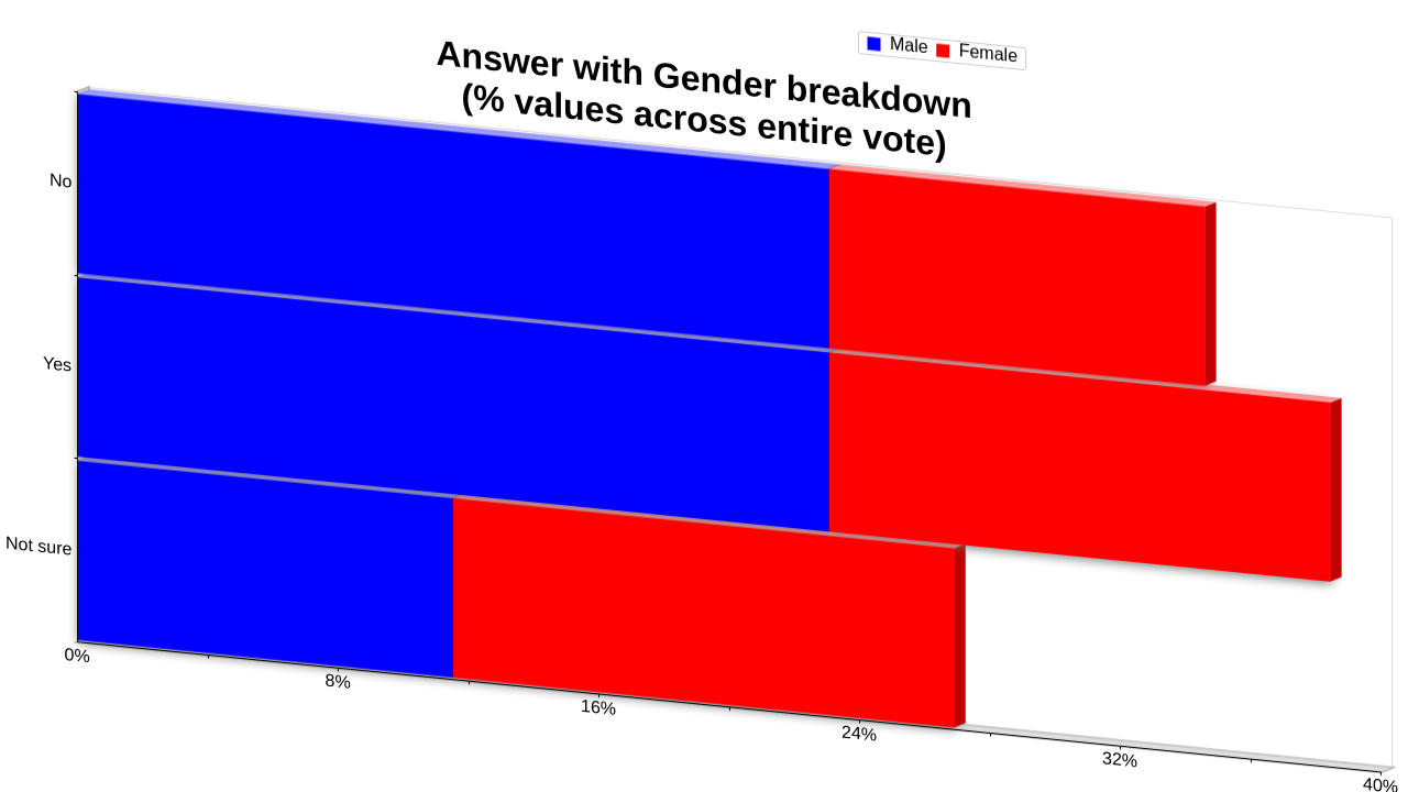 | Answer | Male % | Female % | Total % |