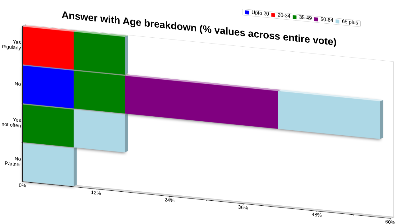 The winning answer was "No, I would never go on holiday without my partner" with 58.33% of the total vote.