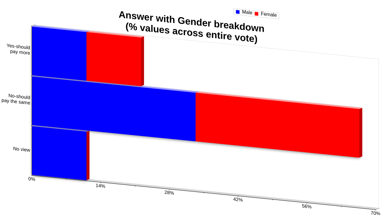The winning answer was "No, they should pay the same" with 66.66% of the total vote.