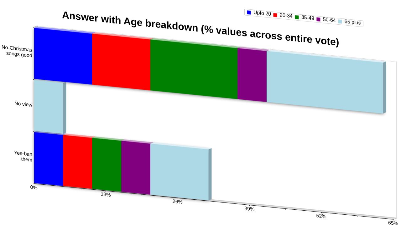 The winning answer was "No-I love Christmas songs in shops" with 63.15% of the total vote.