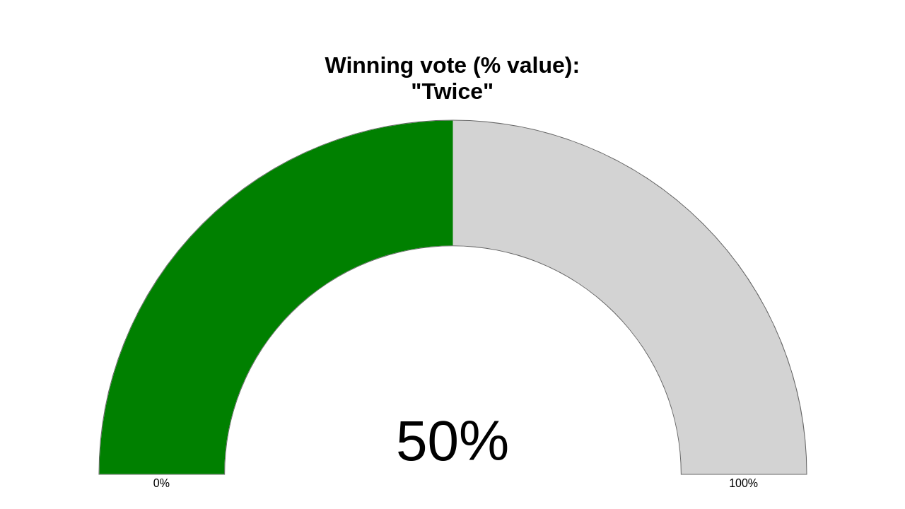 The winning answer was "Twice a day" with 50.00% of the total vote.