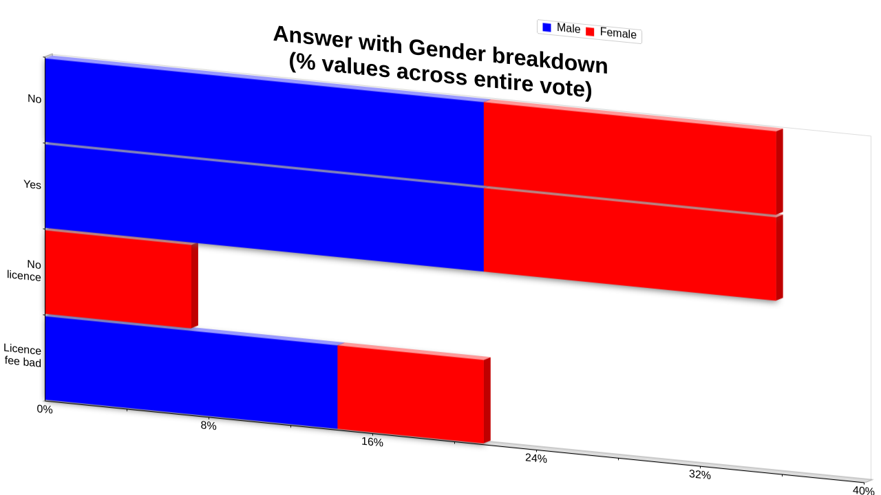| Licence fee bad | 14.28% | 7.14% | 21.42% |